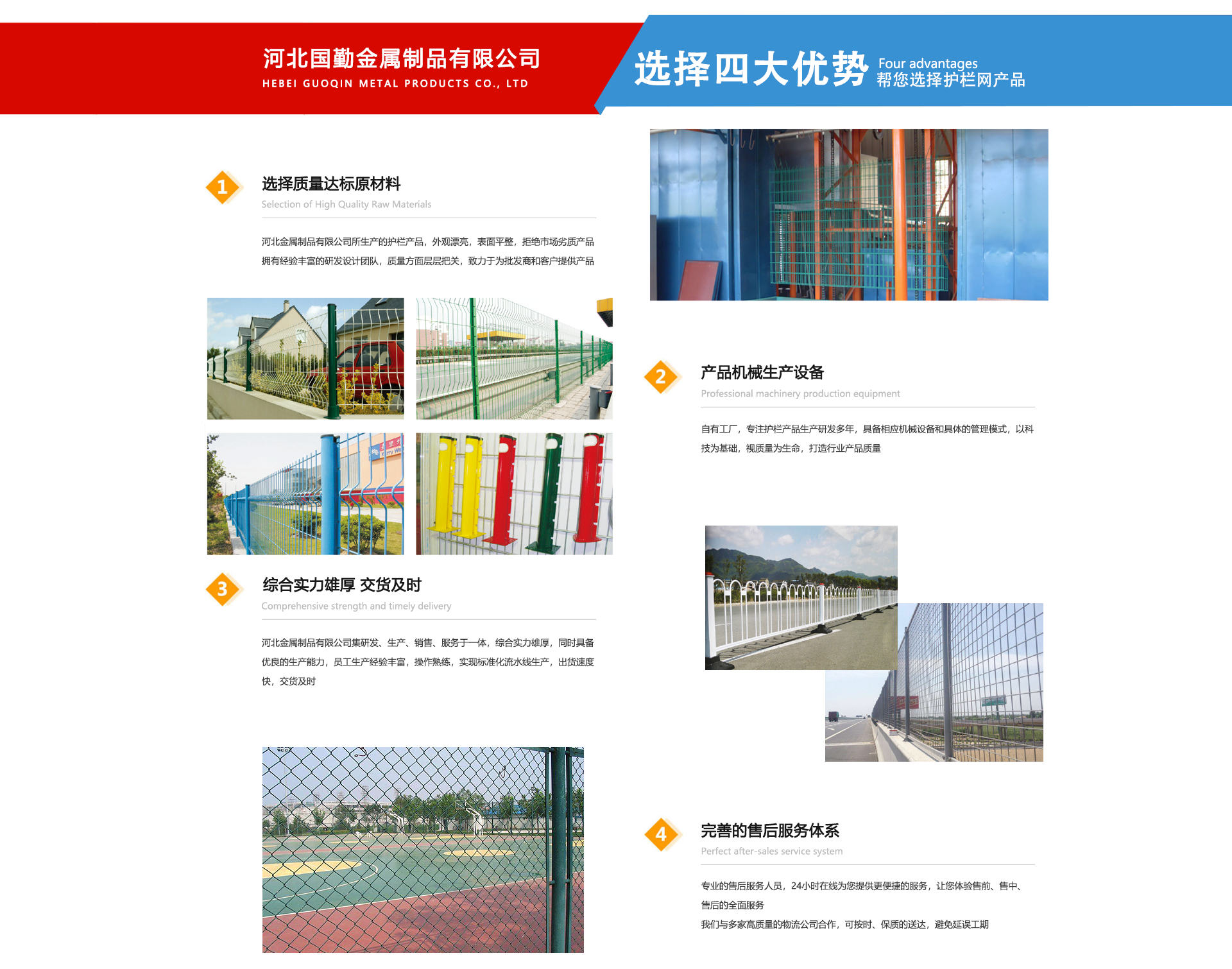 河北國勤金屬制品有限公司位于亞洲較大的絲網(wǎng)生產(chǎn)基地--享譽(yù)世界的“中國絲網(wǎng)之鄉(xiāng)”美譽(yù)的河北省安平縣境內(nèi)。主要是以研發(fā)設(shè)計、制造生產(chǎn)、銷售服務(wù)于一體的高科技現(xiàn)代化企業(yè)。河北國勤金屬制品有限公司主營產(chǎn)品有護(hù)欄網(wǎng),隔離網(wǎng),市政工程,草坪護(hù)欄等各種系列產(chǎn)品的制造廠家。我廠產(chǎn)品被廣泛應(yīng)用于公路、石化、化工、港口、合金、電力、造紙、鋼鐵、建材、市政、石油、污水處理及一般工業(yè)廠房、市政建設(shè)等各個領(lǐng)域。公司自成立以來一直為客戶提供優(yōu)良,貼心的服務(wù)。從售前售中售后我們都以客戶為導(dǎo)向,以設(shè)計先進(jìn)、高科技手段、價格低質(zhì)量優(yōu)等多方面為客戶提供整體全面的服務(wù)。我們相信科技創(chuàng)新的力量,本廠在產(chǎn)品技術(shù)基礎(chǔ)上不斷探索與創(chuàng)新,力求以更高品質(zhì)的產(chǎn)品、更合理的價格、更完善的售后服務(wù)、不斷豐富的產(chǎn)品線滿足于每一位客戶的需求。
